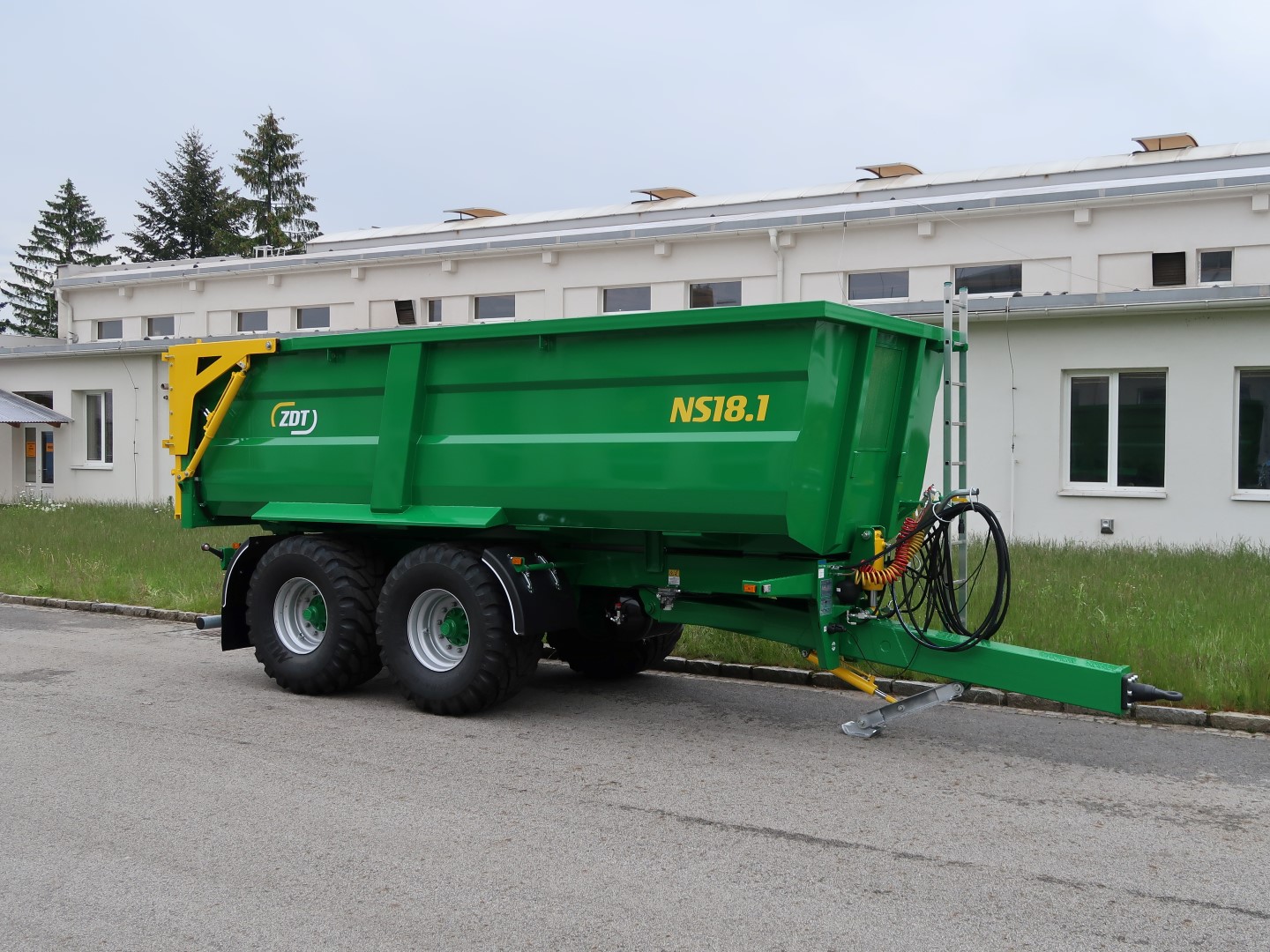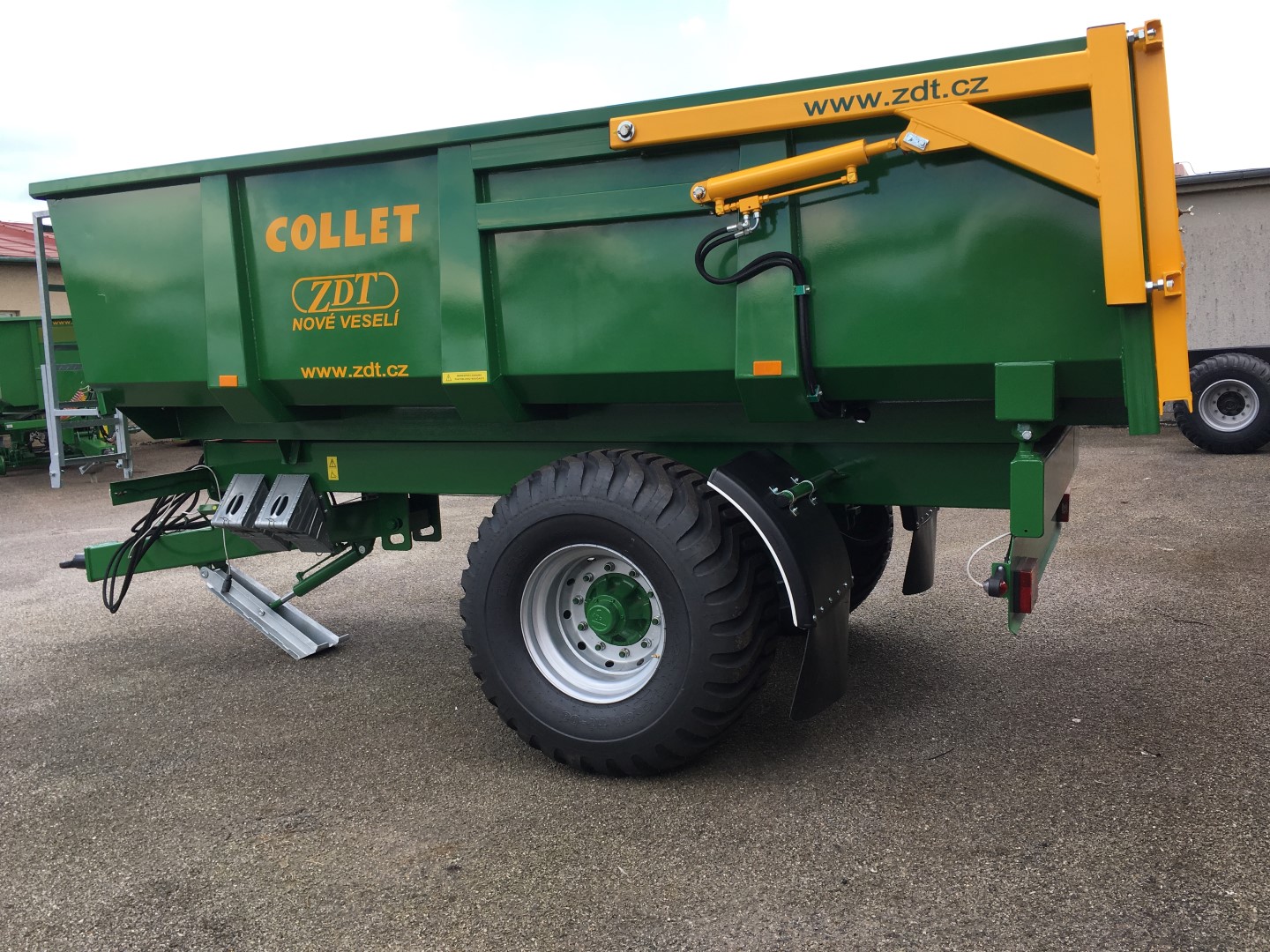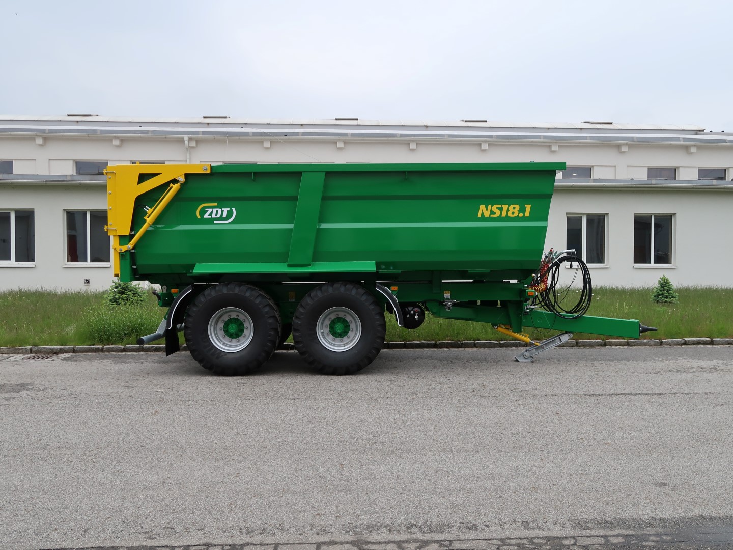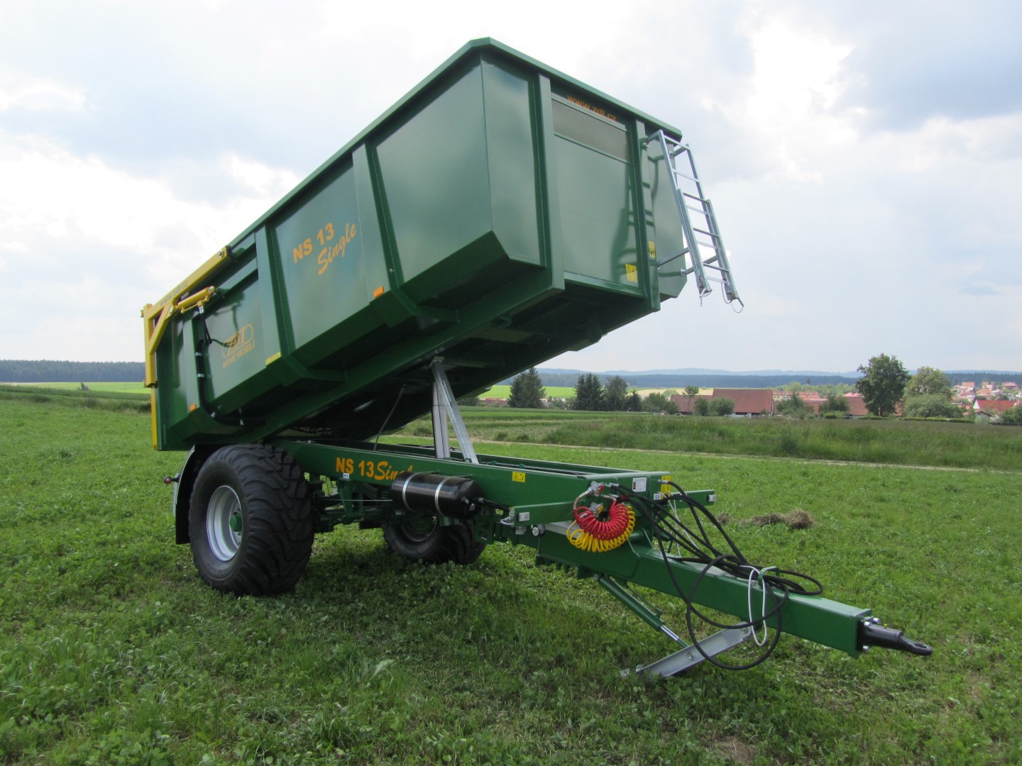 Einzweck-Sattelanhänger als Dreiseitenkipper oder Kippmulde für ein breites Spektrum von Anwendungen, geliefert in Varianten mit einachsigem oder dreiachsigem Fahrgestell. Die Anhänger belasten zum Teil den Traktor über die Deichsel.