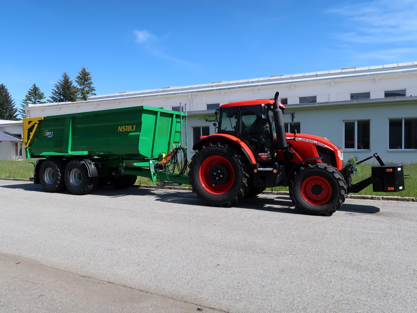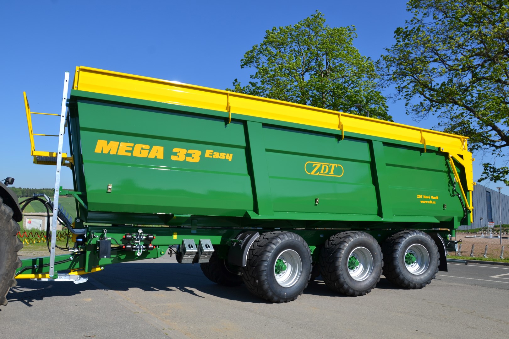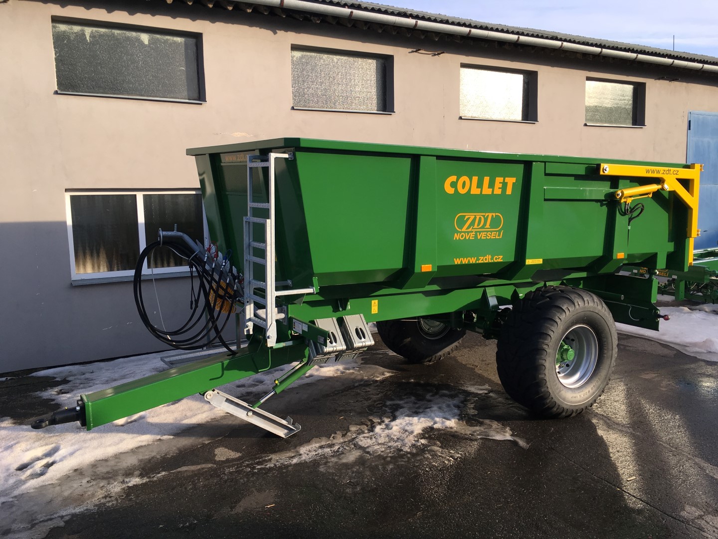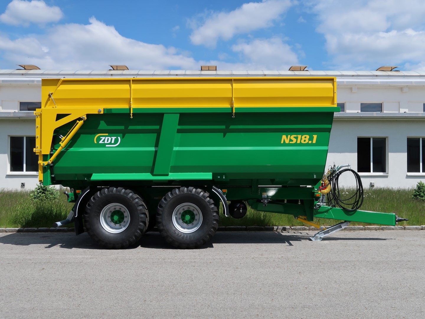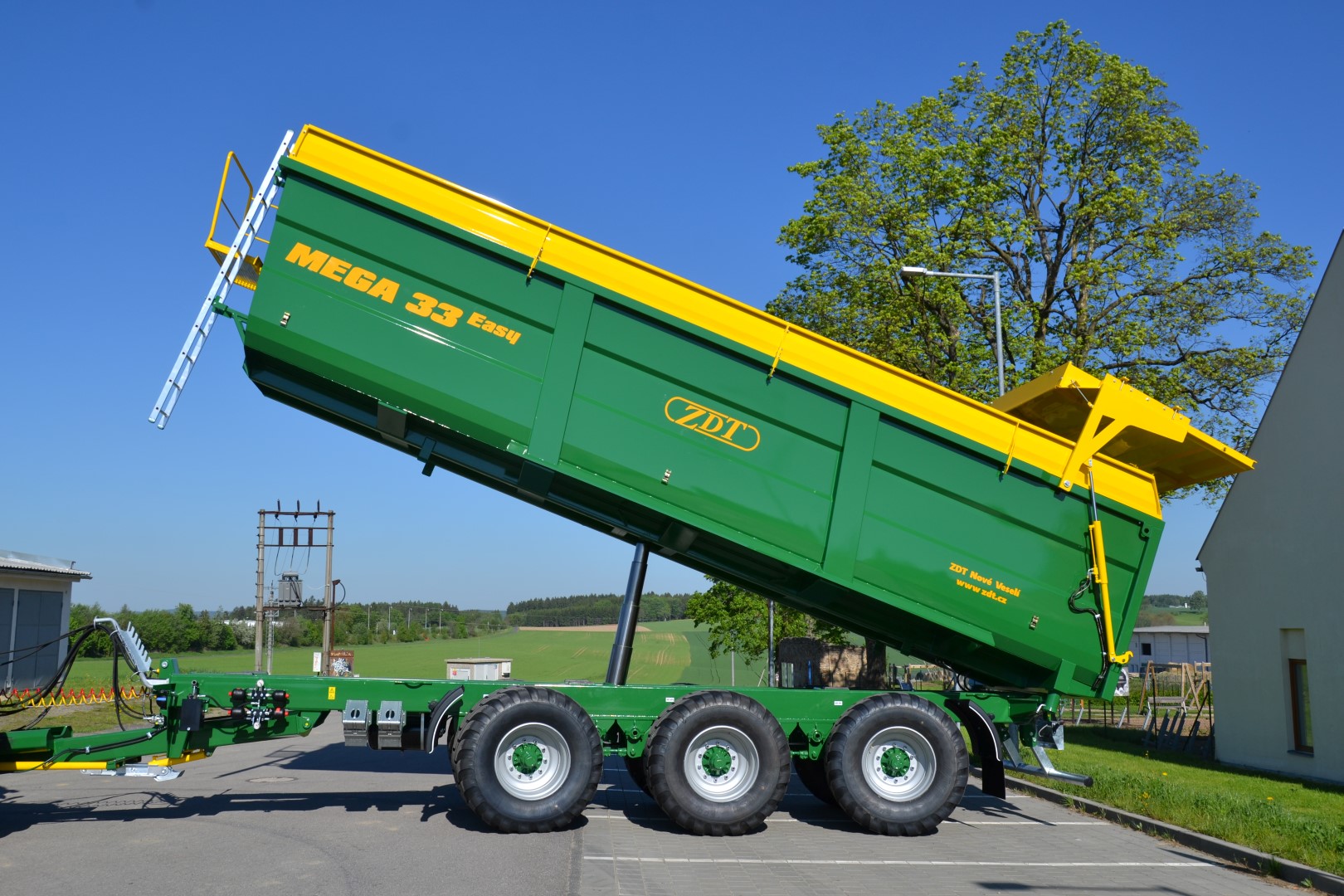 Einzweck-Sattelanhänger als Dreiseitenkipper oder Kippmulde für ein breites Spektrum von Anwendungen, geliefert in Varianten mit einachsigem oder dreiachsigem Fahrgestell. Die Anhänger belasten zum Teil den Traktor über die Deichsel.