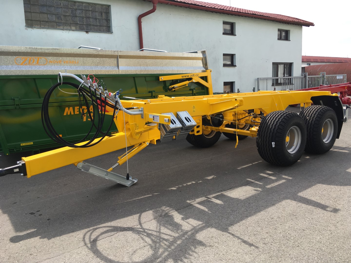 Für Fahrgestelle MEGA25 und 33 bieten wir die Fahrgestellvariante mit hydraulisch gefedertem Deichsel. Statt Feder...
