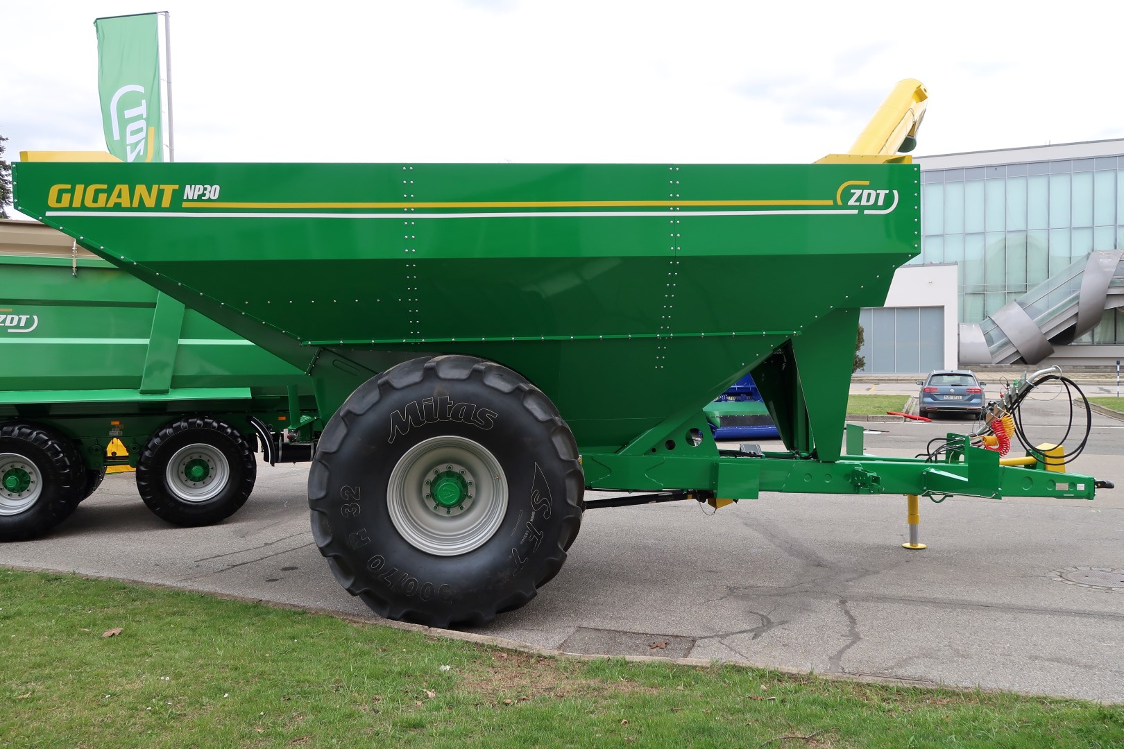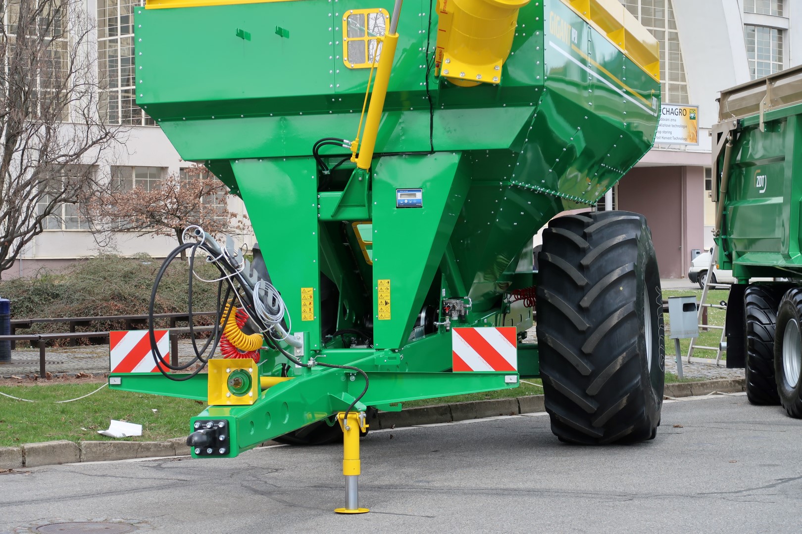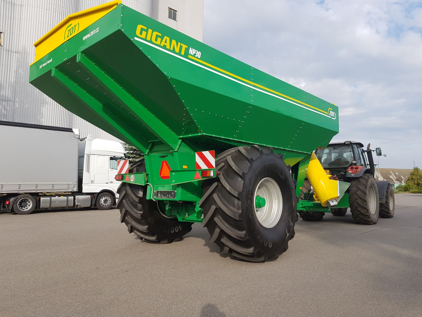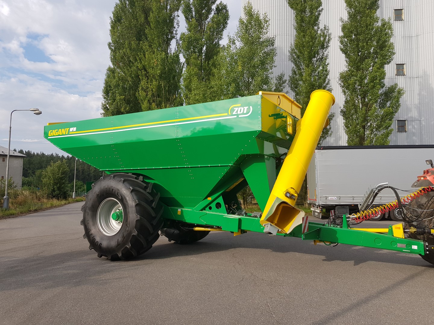 The grain cart GIGANT comes onto the market with perfect technical parameters tailored to efficient and fast harvesting. With its 30 m3 capacity, GIGANT can serve an average of up to 3 harvestors. The time necessary for emptying will fit within three minutes, making the most of the weather when harvesting. Immediately after the machine has been emptied, the tractor driver can again move towards the next combine.