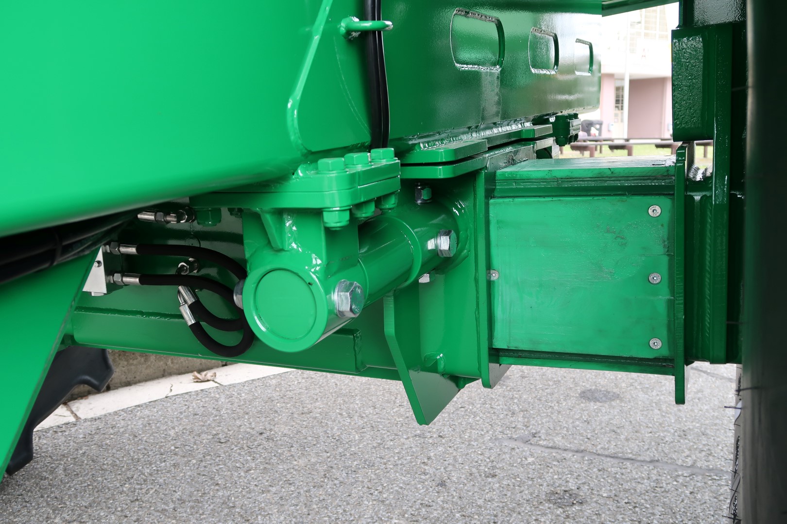 Hydraulic foladble axle allows to increase the axle track and reach better balance in field operation.