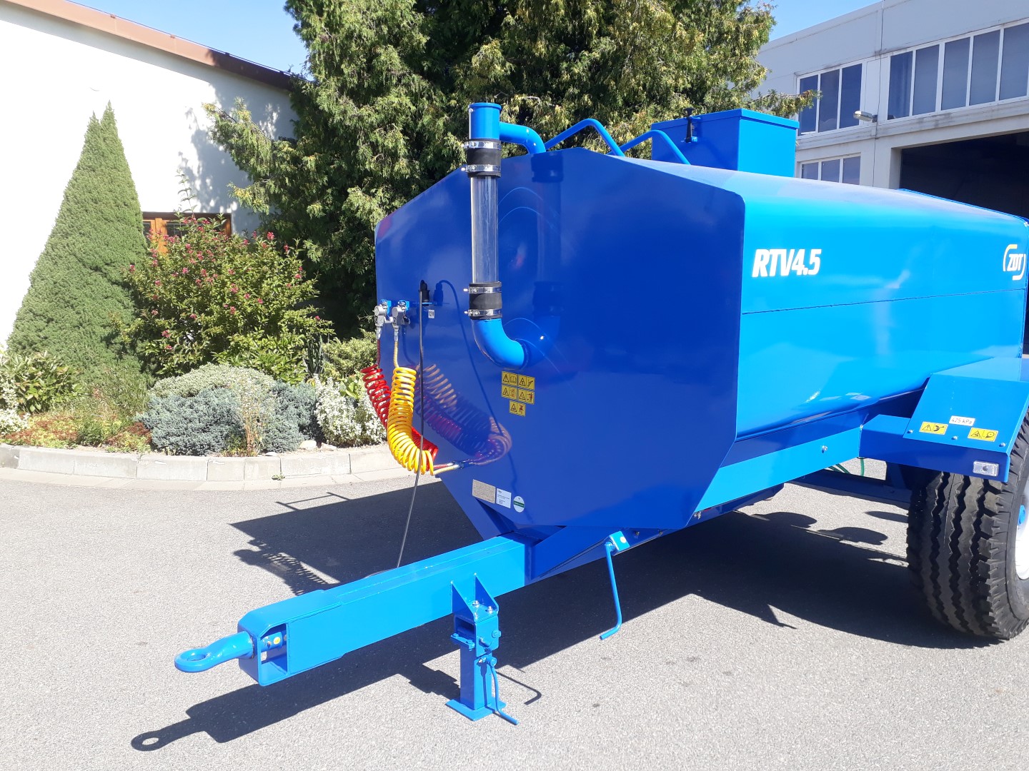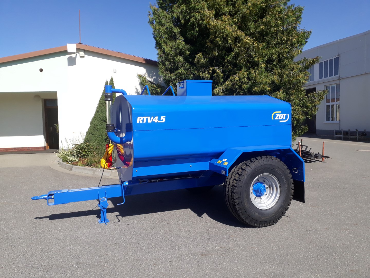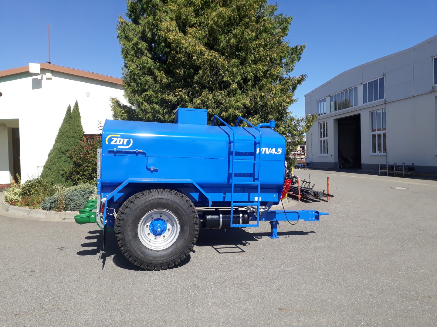 The tank is made of steel sheets, treated with both inner and outer paint. On the rear part of the trailer are placed 4 drink sinks. Those are available to set in appropriate height, depending on various animals. There are also two supporting jacks, keeping the trailer in level. The tank is available in single size and equipment.