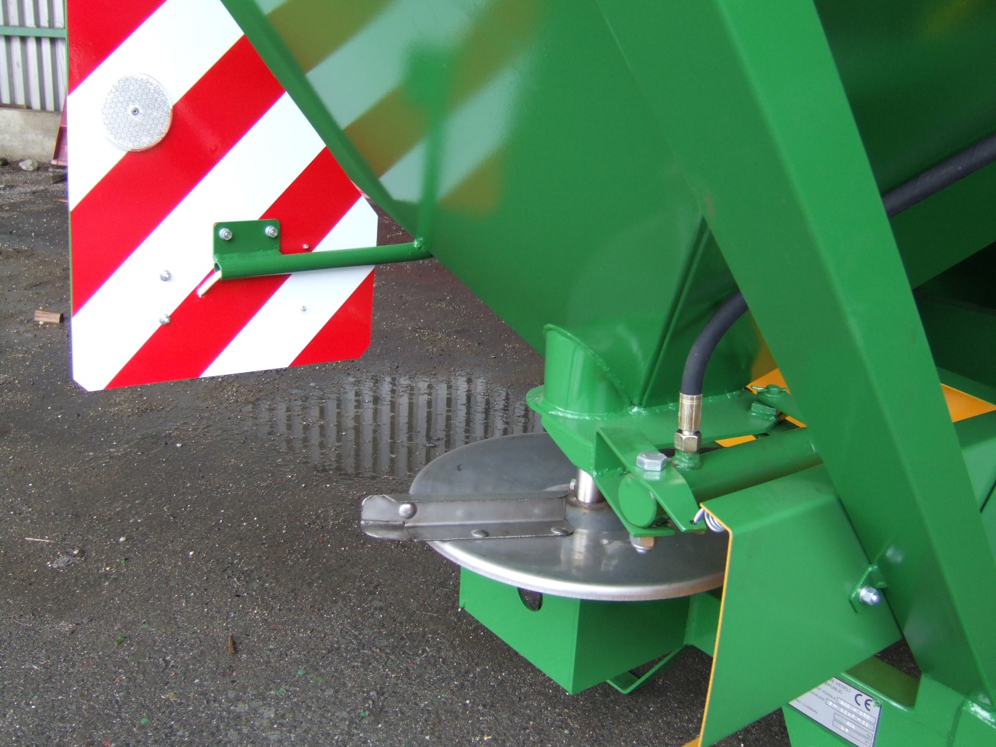 Using the hydraulic cylinders, you can close the left or right side of the hopper in case of spreading in headlands or wedges.